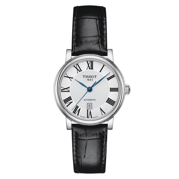 De Tissot® Analogue 'Carson Premium' Dameshorloge T1222071603300 is een elegant statementstuk dat tijdloze verfijning prachtig combineert met moderne functionaliteit. Dit exquise horloge is vervaardigd door Tissot, een merk dat bekend staat om zijn toewijding aan uitzonderlijke kwaliteit en precisie. Het horloge heeft een ronde kast van roestvrij staal met een elegante diameter van 30 mm. Het beschikt over een opvallende zilveren wijzerplaat die een achtergrond biedt voor de delicate wijzers en indexen, waardoor leesbaarheid wordt gegarandeerd en een vleugje klasse wordt toegevoegd. Het saffierglas draagt bij aan de duurzaamheid en biedt krasbestendigheid en helderheid. De zwarte leren band, met een lengte van 19 cm en een breedte van 15 mm, verzorgt een zachte maar robuuste uitstraling om de pols, die is voorzien van een betrouwbare gesp. Dit horloge draait niet alleen om esthetiek; het wordt aangedreven door een automatische beweging, wat zorgt voor nauwkeurige tijdsaanduiding, en bevat een datumfunctie voor extra praktische bruikbaarheid. Met een waterbestendigheid tot 5 bar is het een veelzijdig accessoire, geschikt voor zowel dagelijks gebruik als speciale gelegenheden. De Carson Premium belichaamt de geest van Tissot's vakmanschap en innovatie, en maakt het de perfecte keuze voor vrouwen die luxe en prestatie waarderen in hun accessoires.Koop Tissot® Analogue 'Carson Premium' Dameshorloge T1222071603300 bij Ormoda