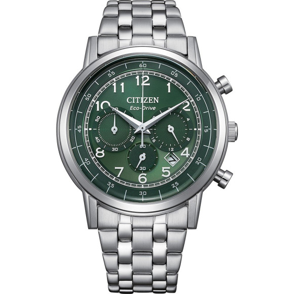 Ontdek de allure van precisie met de Citizen® Chronograph Herenhorloge CA4630-53X. Dit opmerkelijke uurwerk combineert functionaliteit en stijl, met een innovatieve Eco-Drive beweging die licht gebruikt om u op tijd te houden zonder het gedoe van batterijwissels. Verpakt in een slanke, ronde kast van 42 mm gemaakt van stevig roestvrij staal, weerstaat dit horloge de ontberingen van dagelijks gebruik terwijl het een gepolijste uitstraling behoudt. De prachtige groene wijzerplaat voegt een verfrissende touch toe, aangevuld met een duurzame kristallen glasruit, die ervoor zorgt dat uw weergave van de tijd altijd kristalhelder blijft. Het horloge dient niet alleen als een betrouwbare tijdmeter, het heeft ook een praktische datumnotatie, perfect geplaatst om uw gebruiksgemak te verhogen. De chronograafweergave voegt een sportieve touch toe, waardoor u uw momenten nauwkeurig kunt meten. Met een totaalgewicht van 132 gram ligt het horloge comfortabel op uw pols, ondersteund door een verstelbare schakelband van 21 cm van roestvrij staal. De opvouwbare sluiting met drukknop zorgt voor een veilige pasvorm terwijl het een moeiteloos elegante stijl behoudt die naadloos overgaat van formele gelegenheden naar casual uitjes. Ontworpen voor de moderne man die waarde hecht aan verfijning en prestaties, is de Citizen® Chronograph waterbestendig tot 5 ATM, waardoor hij geschikt is voor dagelijks gebruik, zelfs tijdens onverwachte spatten en morsen. Dit horloge is niet alleen een statement; het is een investering in kwaliteit die zowel uw perfecte smaak als uw toewijding aan ambachtelijkheid weerspiegelt.Koop Citizen® Chronograph Herenhorloge bij Ormoda