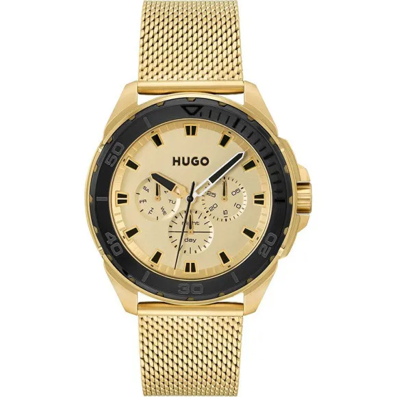 De Hugo Boss® Multi Dial 'Fresh' Herenhorloge 1530288 is een opvallende accessoire ontworpen voor de moderne man. Dit tijdloze stuk belichaamt perfect een casual maar verfijnde stijl en maakt een krachtig statement met de robuuste gouden roestvrijstalen kast van 44mm in diameter. Met een gewicht van 126 gram voelt het solide aan om de pols, terwijl de dikte van 12mm zorgt voor een comfortabele pasvorm. De opvallende multi-dial display in een bijpassende gouden kleur biedt zowel functionaliteit als esthetische aantrekkingskracht, waardoor het eenvoudig is om tijd en datum in één oogopslag te zien. Het horloge is voorzien van een minerale glazen wijzerplaat, wat duurzaamheid garandeert en bestand is tegen dagelijkse stoten en krassen. Met een indrukwekkende waterbestendigheid van 5 ATM is dit horloge geschikt voor dagelijks gebruik en kan het tegen spetters, waardoor het kan voldoen aan een actieve levensstijl. De roestvrijstalen band, die tot 21cm lengte en 21mm breedte reikt, heeft dezelfde gouden tint en complimenteert elegant de horlogekast. De vouwsluiting houdt het horloge veilig om de pols en maakt eenvoudige aanpassingen mogelijk, wat functionaliteit en stijl in balans brengt. Met zo'n opmerkelijke afwerking is deze Hugo Boss tijdpiece niet gewoon een horloge; het is een lifestyle-accessoire dat zowel professionaliteit als een gevoel van modieuze eenvoud reflecteert. Dit horloge gaat niet enkel om het bijhouden van de tijd; het draait om het maken van een blijvende indruk.