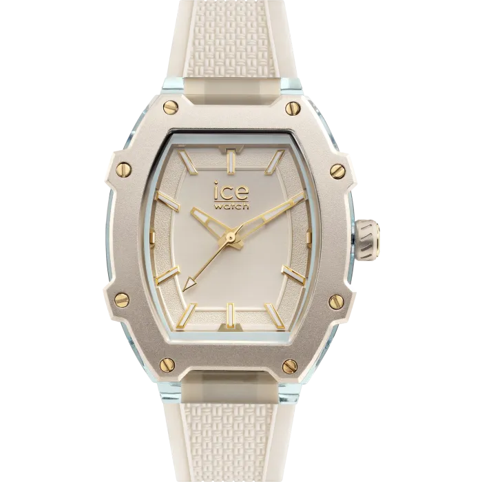 De Ice Watch Analogue 'Ice Boliday - Almond Skin Blue' is een chique accessoire ontworpen voor de moderne vrouw die een casual maar elegante uitstraling omarmt. Dit horloge is de perfecte combinatie van stijl en functionaliteit, ideaal voor degenen die eenvoud en verfijning waarderen. Met zorgvuldige aandacht voor detail is het horloge uitgerust met een beige kunststof kast in de tonneau-stijl, die 47 mm lang en 36 mm breed is. Dit unieke ontwerp vangt een vrouwelijke essentie terwijl het veelzijdig genoeg blijft om bij elke outfit te passen. De wijzerplaat heeft een zachte beige tint en is beschermd door duurzaam mineraalglas, wat zorgt voor helderheid en veerkracht bij dagelijks gebruik. Onder het oppervlak bevindt zich een nauwkeurige quartz beweging, die zorgt voor een betrouwbare tijdsaanduiding. De silicone band, meet 19 cm in lengte en 19 mm in breedte, sluit naadloos aan op de horlogekast, wat zowel comfort als een aantrekkelijke esthetiek biedt. De band is afgewerkt in dezelfde warme beige kleur, waardoor het horloge als geheel harmonieus oogt. Met een waterdichtheid van 5 bar is de Ice Boliday modieus praktisch, zodat je het gedurende je dagelijkse activiteiten zorgeloos kunt dragen. De stijlvolle gespsluiting garandeert een veilige pasvorm, waardoor het gemakkelijk te dragen is en tegelijkertijd de essentie van hedendaagse flair belichaamt. Dit horloge is niet alleen bedoeld om de tijd aan te geven; het viert jouw unieke stijl met elke draagbeurt, waardoor je je op elke gelegenheid empowered en modieus voelt.