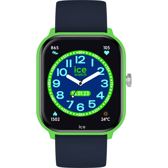 Ontdek de Ice Watch® Digital 'Ice Smart Junior 2.0 - Groen - Blauw' jongenshorloge 022790, waar levendig ontwerp samenkomt met innovatieve functionaliteit. Speciaal gemaakt voor jonge avonturiers, trekt dit sportieve horloge de aandacht met zijn gedurfde groene rechthoekige kast en kleurrijke wijzerplaat. Een perfecte combinatie van stijl en praktische toepassing, dit horloge is ideaal voor jongens die een statement willen maken. Het horloge heeft een duurzame kunststof kast die de ontberingen van het spel weerstaat, met een lengte van 41 mm en een breedte van 35 mm, en een dikte van 11 mm. Met oog voor detail toont het een kleurrijke wijzerplaat die beschermd wordt door een veerkrachtig mineraalglas, dat zorgt voor krasbestendigheid en heldere zichtbaarheid. De ijsblauwe siliconen band is niet alleen opvallend, maar ook ontworpen voor comfort en flexibiliteit. Met een lengte van 20 cm en een breedte van 21 mm past het zich gemakkelijk aan de pols aan, veiliggesteld met een betrouwbare gespsluiting. Naast het stijlvolle uiterlijk is het horloge uitgerust met geavanceerde functies, waaronder Bluetooth-connectiviteit, een stopwatch, timer, hartslagmonitor en alarm - perfect voor actieve jongeren. Bovendien met een waterbestendigheid van tot 5 bar, weerstaat het spetters zonder problemen. Dit digitale horloge is ontworpen voor het bruisende leven van jongens, waarbij plezier wordt gecombineerd met essentiële tijdregistratie en technologie.
