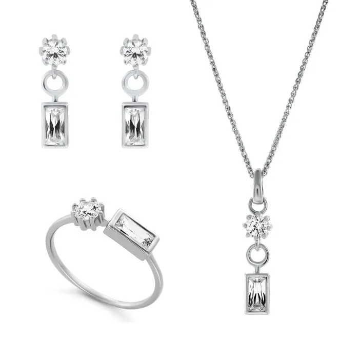 Orphelia® 'Madelyn' Dames Zilver 925 925 Set: Ketting + Oorbellen + Ring - Zilverkleurig SET-7583