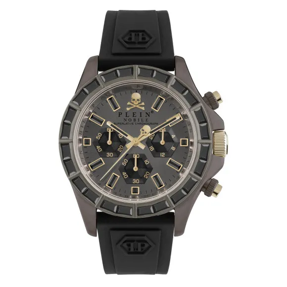 Ontdek de Philipp Plein® Chronograph 'Nobile Racing' Herenhorloge PWVAA0323, een opmerkelijk tijdstuk dat stijl en functionaliteit moeiteloos combineert voor de moderne man. Dit horloge is een eerbetoon aan innovatie en design, met een bruine roestvrijstalen kast die een luxe en tegelijkertijd casual esthetiek uitstraalt. Met precisie gebouwd, huisvest de ronde kast van 43 mm een duurzaam mineraal glasvenster dat de verfijnde bruine wijzerplaat beschermt, voorzien van opvallende stenenzettingen op de lunette die de allure verhoogt. Het chronograafdisplay verhoogt niet alleen de bruikbaarheid, maar getuigt ook van de kunstzinnigheid die in de creatie ervan is gestoken. Het mechanisme van dit verfijnde horloge wordt aangedreven door quartz, wat zorgt voor uitzonderlijke nauwkeurigheid en betrouwbaarheid. Met een dikte van slechts 12 mm behoudt het een slank profiel dat perfect aansluit bij elke outfit, van een werkdag tot avonduitjes. Het innovatieve ontwerp strekt zich uit tot de horlogeband, vervaardigd uit hoogwaardig silicone in klassiek zwart, wat zowel comfort als stijl biedt. Met een bandlengte van 21 cm en een breedte van 21 mm belooft het een veilige pasvorm voor diverse polsmaten. Waterbestendig tot 5 bar maakt het Nobile Racing-horloge het mogelijk om je actieve levensstijl zonder zorgen te omarmen. De hoogte van 52 mm van lug tot lug draagt bij aan de uitzonderlijke ergonomie, waardoor het niet alleen een horloge is, maar een statementstuk. Ontworpen voor de veeleisende heer die de fijnere dingen in het leven waardeert, is dit horloge een essentieel accessoire dat luxe en praktische toepasbaarheid combineert, waardoor het de ideale metgezel voor elke gelegenheid is. Koop Philipp Plein® Chronograph 'Nobile Racing' Herenhorloge PWVAA0323 bij Ormoda