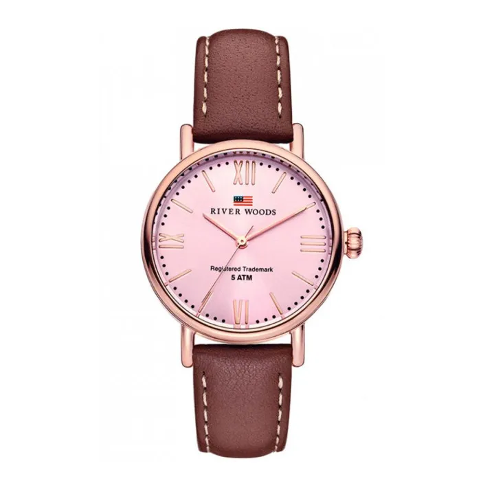 Maak kennis met de River Woods® Analogue 'Wisconsin' Dameshorloge RW340031, waar elegantie en functionaliteit samenkomen in een adembenemend ontwerp, speciaal gemaakt voor de moderne vrouw. River Woods onderscheidt zich door zijn toewijding aan kwaliteit en biedt horloges aan die zowel verfijnd als praktisch zijn. Het merk laat zich inspireren door een natuurlijke en avontuurlijke geest en combineert hedendaagse stijlen met klassieke ambachtelijkheid. Elk horloge weerspiegelt een toewijding aan vakmanschap, waardoor het niet alleen een manier is om de tijd bij te houden, maar ook een statementaccessoire dat je persoonlijke stijl versterkt. Met River Woods draag je niet alleen een horloge; je toont een levensstijl die authenticiteit en schoonheid waardeert. De River Woods® Analogue 'Wisconsin' is speciaal ontworpen voor vrouwen die waarderen om tijdloze esthetiek in hun accessoires te integreren. De ronde kast van rosegoudkleurig roestvrij staal, met een diameter van 34 mm en een dikte van 9 mm, omarmt elegant de zachte roze wijzerplaat. Deze prachtige kleur, gecombineerd met mineraalglas, zorgt voor een frisse en heldere uitstraling die perfect is voor elke gelegenheid. Met een quartz beweging die zorgt voor nauwkeurige tijdmeting, combineert dit horloge technische betrouwbaarheid met een chique uitstraling in een lichtgewicht pakket van slechts 35 gram. De bruine leren band voegt een vleugje warmte en veelzijdigheid toe, met een lengte van 19 cm en een breedte van 14 mm, terwijl de gesp de band comfortabel om je pols bevestigt. Met een indrukwekkende waterbestendigheidswaarde van tot 5 bar is dit horloge zowel een accessoire als een praktische metgezel voor dagelijks gebruik. Of je nu je outfit opfrist voor een formele gelegenheid of geniet van een ontspannen uitje, de River Woods® Analogue 'Wisconsin' voegt een sprankeling toe aan je look, waardoor het een onmisbare aanvulling op je collectie is. Dit opmerkelijke stuk vertelt niet alleen de tijd; het vertelt jouw verhaal. Omarm de essentie van elegantie en functionaliteit met dit prachtige horloge om je pols.