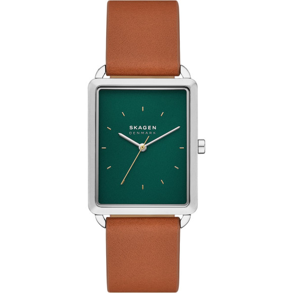 Met trots presenteren wij de Skagen® Analogue 'Hagen' Herenhorloge SKW6931, een opvallend voorbeeld van Scandinavisch design dat functionaliteit naadloos combineert met stijl. Dit horloge is vervaardigd voor de moderne man die houdt van strakke lijnen en ingetogen elegantie. Skagen, het merk achter dit meesterwerk, staat bekend om zijn passie voor minimalisme en innovatie. Opgericht in 1989, haalt het bedrijf inspiratie uit de Deense kustlijn en geeft elke tijdmeter de natuurlijke schoonheid en eenvoud van de regio mee. Met een sterke focus op kwaliteit en duurzaamheid gebruikt Skagen duurzame materialen terwijl elk ontwerp vol karakter en persoonlijkheid zit. Het 'Hagen' model vormt hierop geen uitzondering en is daarmee de perfecte metgezel voor zowel professionele als casual settings. Dit horloge heeft een rechthoekige kast van roestvrij staal die niet alleen de slanke uitstraling versterkt, maar ook zorgt voor duurzaamheid en een lange levensduur. Met een lengte van 36 mm en een breedte van 29 mm zit de kast comfortabel om de pols, terwijl de dikte van 7 mm zorgt voor een verfijnde uitstraling. De rijke groene wijzerplaat is zowel onderscheidend als elegant en is afgewerkt met sterk mineraalglas dat helderheid garandeert en krassen weerstaat. Voor optimaal comfort is het horloge voorzien van een bruine leren band van 21 cm lang en 20 mm breed, beveiligd met een betrouwbare klapsluiting. Met een waterbestendigheid van 5 bar kun je dit horloge met vertrouwen dragen in verschillende omgevingen, wetende dat het de spetters van het dagelijks leven kan weerstaan. Het quartzmechanisme zorgt voor nauwkeurige tijdsaanduiding, waardoor dit horloge niet alleen een praktisch accessoire is, maar ook een statement piece voor elke man. Elk aspect van de Skagen® Analogue 'Hagen' Herenhorloge SKW6931 weerspiegelt een harmonieuze balans tussen vorm en functie, perfect voor de man die niet alleen op zoek is naar een tijdpiece, maar naar een afspiegeling van zijn stijl en persoonlijkheid.Koop Skagen® Analogue 'Hagen' Herenhorloge bij Ormoda