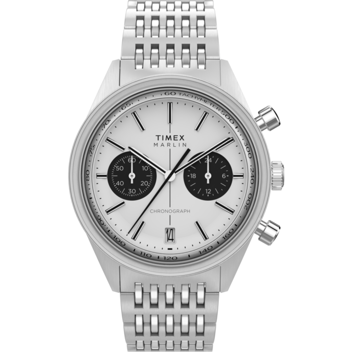 De Timex® Chronograph 'Marlin Jet' Herenhorloge TW2Y24600 combineert tijdloze elegantie met moderne functionaliteit, waardoor het een statement stuk is voor iedere veeleisende gentleman. Met een robuuste zilveren behuizing van roestvrij staal van 40mm in diameter en een dikte van 13.5mm is dit uurwerk ontworpen om zowel de uitdagingen van een actieve levensstijl als de eisen van een verfijnde uitstraling aan te kunnen. De stijlvolle ronde behuizing past perfect bij de verfijnde zilveren wijzerplaat, beschermd door duurzaam mineraalglas dat zichtbaarheid en helderheid verbetert. Uitgerust met een nauwkeurige quartzbeweging, zorgt de Marlin Jet voor een accurate tijdweergave, terwijl de chronograaffunctie extra functionaliteit biedt voor hen die waarde hechten aan timing. De tachymeter bezel voegt een sportieve aspect toe, waarmee je de snelheid kunt meten op basis van de afgelegde afstand in een bepaalde tijd. Niet te vergeten is de handige datumaanduiding, naadloos geïntegreerd in het ontwerp. De zilveren band van roestvrij staal, met een lengte van 21cm en een breedte van 20mm, biedt een comfortabele pasvorm die wordt verzekerd door een opvouwbare drukknopsluiting, zodat het horloge stevig op zijn plaats blijft tijdens al je activiteiten. Met een waterbestendigheid van 5 ATM kan dit horloge gemakkelijk spetters en kort onderdompelen in water weerstaan, waardoor het een veelzijdige metgezel is voor elke gelegenheid. Timex brengt een vleugje opwinding in de traditionele horlogemakerij met de Marlin Jet, een perfecte balans van professionaliteit en vriendelijke charme die geschikt is voor elke gentleman, of hij nu aan het werk is of in zijn vrije tijd.