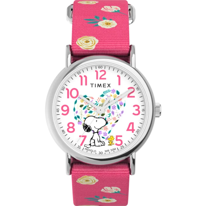 Timex is een gerenommeerd merk dat staat op het kruispunt van innovatie en erfgoed, en tijdmetingen vervaardigt die zowel betrouwbaar als stijlvol zijn. Met een erfgoed dat generaties omspant, combineert Timex klassieke ontwerpen met moderne technologie om iets voor iedereen te bieden. Van casual uitjes tot speciale gelegenheden, elk horloge is ontworpen om je dynamische levensstijl bij te houden, terwijl het een vleugje verfijning behoudt. Timex-horloges worden geprezen om hun duurzaamheid en precisie, waardoor dragers met vertrouwen hun individualiteit kunnen uitdrukken. Het zijn niet alleen accessoires; ze belichamen tijdloze charme en essentiële functionaliteit, en geven je de kracht om je stempel op elk moment te drukken. Of je nu je dagelijkse avonturen omarmt of je kleedt voor een avondje uit, Timex zorgt ervoor dat je dat doet met vertrouwen, stijl en een twinkeling van speelsheid.Over Timex® Analogue 'Peanuts Peanuts Weekender' Women's Watch