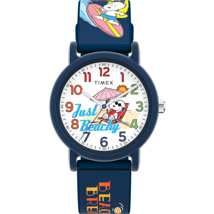 Timex is een naam die synoniem staat voor kwaliteit en betrouwbaarheid, en verrijkt levens met innovatieve tijdmeetapparaten sinds haar ontstaan. Bekend om zijn aandacht voor detail en toewijding aan vakmanschap, is Timex uitgegroeid tot een wereldwijde leider in de horloge-industrie. Ze streven ernaar om veelzijdigheid te combineren met stijl en bieden producten die voor iedereen aantrekkelijk zijn, inclusief kinderen. Hun ontspannen maar toch verfijnde ontwerpen spreken jongere doelgroepen aan en helpen blijvende herinneringen te creëren met elke tik van de klok. Timex omarmt een geest van avontuur, waardoor hun horloges perfecte metgezellen zijn voor leuke kinderescapades. Elk stuk toont heldere en kleurrijke ontwerpen die creativiteit en opwinding inspireren, met name door samenwerkingen met iconische merken zoals Peanuts. Door zorgvuldig hoogwaardige materialen en robuuste componenten te selecteren, blijft Timex een gevoel van vertrouwen en ontdekking in jonge dragers inspireren, en zorgt ervoor dat hun horloges niet slechts accessoires zijn, maar gekoesterde items die kinderen door verschillende mijlpalen begeleiden.Over Timex® Analoge 'Peanuts Weekender Color Rush' Kinderen Horloge
