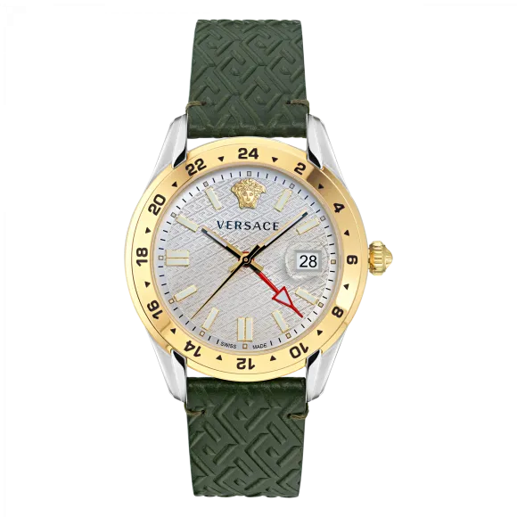 Versace is een naam die resoneert met overvloed en een gedurfde modeverklaring. Opgericht door Gianni Versace in 1978, heeft dit gerenommeerde Italiaanse luxemerk de wereld betoverd met zijn eclectische ontwerpen en dramatische flair. Bekend om zijn innovatieve benadering en onberispelijke vakmanschap, is Versace synoniem geworden met haute couture, luxe accessoires en high fashion. Elk stuk weerspiegelt de artistieke visie en aandacht voor detail waarvoor het merk bekend staat, waardoor dragers niet alleen opmerkelijk uitzien, maar zich ook empowered voelen. Met hun horloges blijft Versace grenzen verleggen, door tijdpieces te ontwerpen die traditie combineren met hedendaagse esthetiek. De toewijding van het merk aan kwaliteit en luxe is duidelijk in elk aspect van het horlogemaken, van de keuze van premium materialen tot de intrigerende ontwerpen die iconische motieven bevatten. Centraal in de filosofie van Versace staat de overtuiging dat elk horloge een unieke expressie van individualiteit moet zijn. De Greca Time GMT is een bewijs van deze ethos, die verfijning en functionaliteit samenbrengt, en de geest belichaamt van de moderne man die zowel stijl als inhoud waardeert.Over Versace® Analogue 'Greca Time Gmt' Herenhorloge