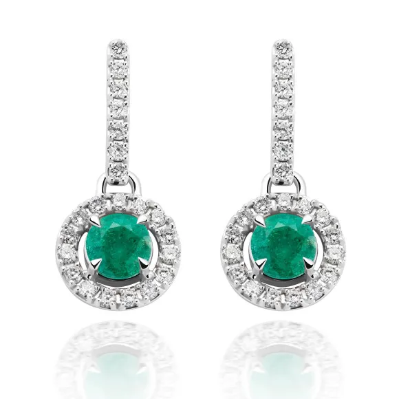 The Orphelia® 'Evina' Women's Whitegold 18C Drop Earrings - Silver OD-5332/EM elegantly encapsulate the essence of refined sophistication. Crafted with meticulous detail, these earrings are designed for the discerning woman who appreciates exquisite jewelry that reflects her style and grace. The drop earrings boast a delicate balance of white gold, ensuring that they catch the light beautifully, while the soft shimmering surface adds to their allure. Each earring features 44 stunning diamonds with a clarity of small inclusions, nestled alongside vibrant emeralds that exude a captivating green hue. The total gem weight comes to a remarkable 0.71 carats, showcasing the skillful artistry that goes into each piece. Measuring 2 cm in height and 0.8 cm in width, these earrings dangle gracefully, drawing attention to your neckline and enhancing your natural beauty. Ideal for both formal occasions and everyday elegance, the butterfly back finding ensures a secure fit with every wear. The combination of white gold and emeralds creates a timeless piece that transcends trends—perfect for the woman who believes in investing in ornamental treasures that tell her story. Wear the Evina earrings to express your personality and charm, making these a cherished addition to your jewelry collection.Shop Orphelia OD-5332/EM at Ormoda