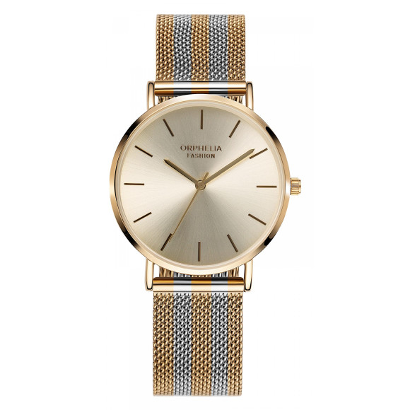 Introducing the captivating Orphelia Fashion® Analogue 'Milano' Women's Watch OF714816, a perfect blend of elegance and functionality designed for the modern woman. This exquisite timepiece features a stunning gold alloy case with a diameter of 36mm, exuding sophistication while remaining incredibly lightweight at just 55 grams. The round case, at a thickness of 7mm, comfortably adorns the wrist, making it suitable for any occasion, from casual outings to more formal gatherings. The intricate design is paired with a gold dial that adds a touch of luxury, secured by durable mineral glass to withstand the hustle and bustle of everyday life. One of the standout elements of the Milano is its vibrant multicolour stainless steel band that not only ensures a comfortable fit but also brings a splash of personality to your outfit. Measuring 20cm in length and 18mm in width, the band features a reliable fold-over clasp that provides a secure closure, so you can wear it with confidence. With a water resistance rating of 3 bars, this watch is perfect for everyday wear, whether you are caught in the rain or splashing water while washing your hands. Driven by a precise quartz movement, the Milano guarantees a reliable experience, keeping you on schedule in style. The analogue display style adds a classic touch, making it a timeless piece that complements any wardrobe. Designed specifically for the fashion-forward woman, the Orphelia Milano watch is a statement accessory that embodies elegance and modernity, promising to enhance your personal style effortlessly.Shop Orphelia Fashion OF714816 at Ormoda