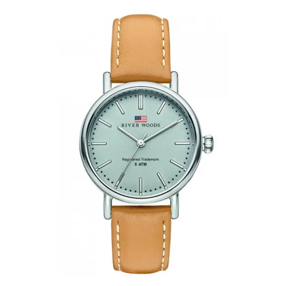 The River Woods Analogue 'Oswego' Women's Watch RW340013 embodies elegance and sophistication, making it the perfect accessory for the modern woman. With a delicate silver stainless steel case measuring 34mm, this watch stands out with its round design that is sure to turn heads. The refined yet functional grey dial, topped with mineral glass, is both stylish and durable, allowing for easy time reading at a glance. Adorned with a luxurious brown leather band, this timepiece not only feels comfortable on the wrist but adds a touch of warmth to your ensemble. The band, measuring 19cm in length and 14mm in width, is designed for a secure fit, accommodated by a classic buckle clasp that ensures it stays in place through your daily activities. With a case thickness of just 9mm, the Oswego watch feels lightweight yet sturdy, weighing only 35 grams through its sleek design. As a quartz movement watch, it guarantees accurate timekeeping, allowing you to stay punctual on your busiest days. Rated for a water resistance of 5 ATM, this piece is versatile enough for both elegant events and spontaneous outings, blending seamlessly into your lifestyle. Embrace the charm and reliability of the River Woods Oswego watch, and elevate your accessory collection with an essential piece that reflects your personality and grace.Shop River Woods RW340013 at Ormoda