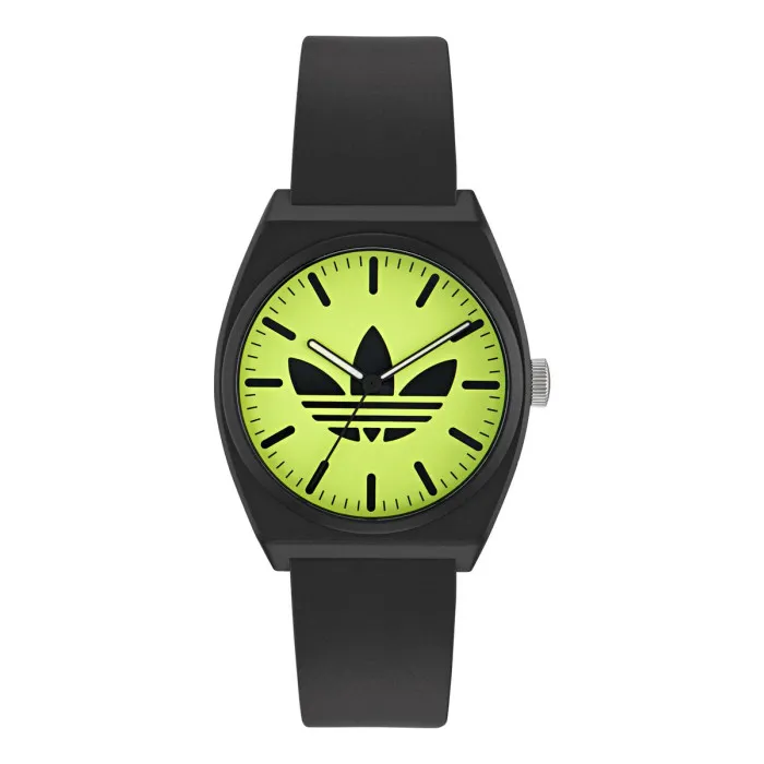Introducing the Adidas Originals® Analogue 'Project Two' Unisex's Watch AOST25549, a timepiece designed to meet the needs of the modern individual. The brand Adidas has long been a symbol of innovation and quality in the sports and fashion industries. They infuse every product with their iconic style, blending functionality with artistic flair. Adidas is dedicated to creating items that resonate with both athletes and fashion enthusiasts, offering a seamless combination of performance and aesthetics. The Originals line honors the brand's rich history while embracing contemporary designs, ensuring each piece remains timeless and relevant. This watch is a perfect embodiment of that philosophy, making it a must-have accessory for those with an appreciation for quality and style. With a sleek black case crafted from durable resin, this watch combines style with comfort. The round 38mm case is designed to suit any wrist and complements the vibrant green dial, which is both eye-catching and easy to read. Featuring quartz movement, this watch ensures precise timekeeping, essential for the busy lifestyle of today’s users. The mineral glass dial window offers protection against scratches, while the unisex design guarantees it can be worn by anyone looking to elevate their watch game. The black resin band not only matches the case but also provides a comfortable fit, extending up to 20 centimeters in length and 19mm in width, secured by a reliable buckle clasp. With a water resistance of up to five bars, this watch is suitable for everyday wear, whether you're at work or enjoying weekend adventures.