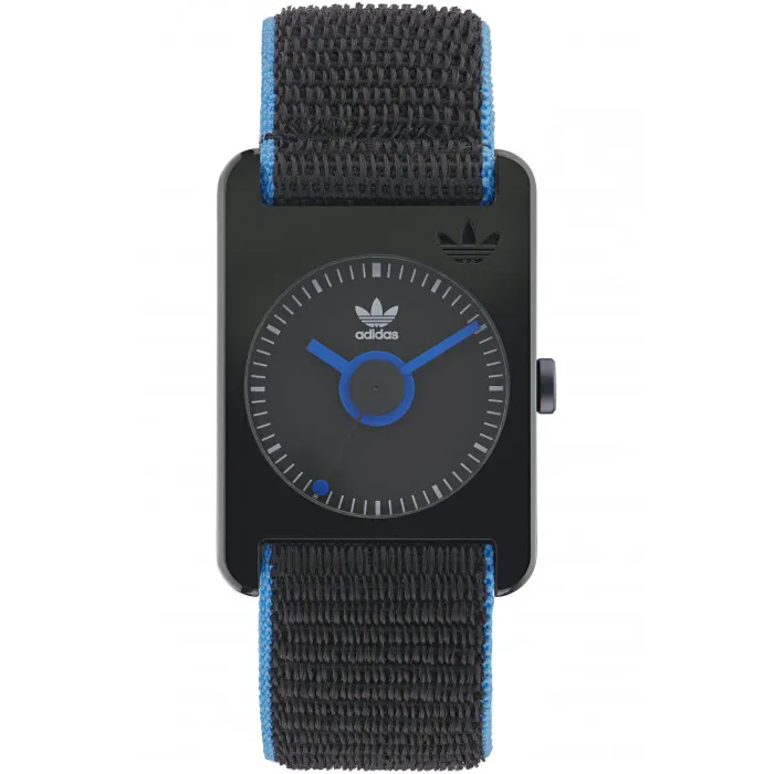 The Adidas Originals® Analogue 'Retro Pop One' Unisex's Watch AOST22542 is a striking blend of fashion and functionality. Designed for individuals who appreciate a casual yet stylish accessory, this timepiece embodies the spirit of Adidas Originals. The brand is renowned for its unique approach to sports, fashion, and lifestyle, ensuring that its products resonate with a sense of authenticity and innovation. The Retro Pop One watch features a rectangular black resin case that measures 43mm in length and 31mm in width, making it a versatile piece suitable for any occasion. The 9mm thickness adds a sturdy feel while keeping it lightweight at just 36 grams. The watch showcases a black dial that is protected by durable mineral glass, ensuring clarity during every glance. Crafted with precision, the quartz movement guarantees accurate timekeeping, allowing you to stay punctual whether at work or during leisure activities. The fabric band is not only stylish in its black color but also extends comfortably to 20 centimeters in length and 22 millimeters in width, secured with a reliable Velcro clasp. Designed for everyday use, this watch is water-resistant up to 3 bars, making it a suitable choice for both casual outings and active moments. The Adidas Originals Retro Pop One is not just about telling time; it is a statement of personal style and functionality. This timepiece is an ideal companion for anyone looking to express their love for sporty aesthetics with the comfort of everyday wear.