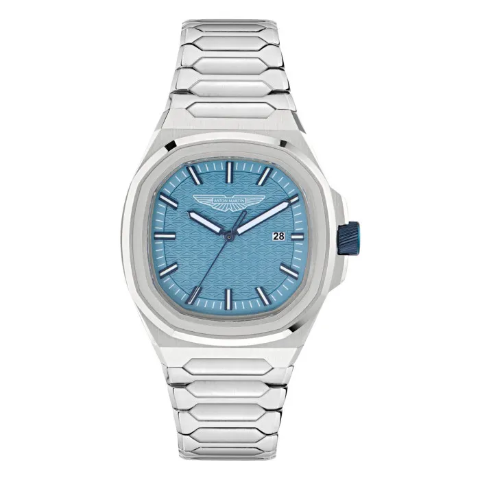 The Aston Martin® Analogue 'Icon Gpq' Men's Watch MTIG2S605 features a stunning square case with a silver finish, mirroring the refined lines and character of Aston Martin's legendary automobiles. Measuring 42mm in diameter and 11.4mm in thickness, this watch offers a substantial presence on the wrist while ensuring comfort with its elegant design. The blue dial, protected by durable mineral glass, exudes sophistication and allows for easy readability, complemented by a date calendar function. Crafted from high-quality stainless steel, the watch not only assures durability but also reflects a sense of understated luxury. The stainless-steel band, measuring 21cm in length and 24mm in width, is designed with a deployment clasp for a secure fit that enhances the watch's sleek appearance. With an impressive water resistance of up to 10 bars, it is ready for any adventure. Weighing just 183 grams, this timepiece is both sturdy and lightweight, making it perfect for everyday wear.Introducing Aston Martin® Analogue 'Icon Gpq' Men's Watch MTIG2S605