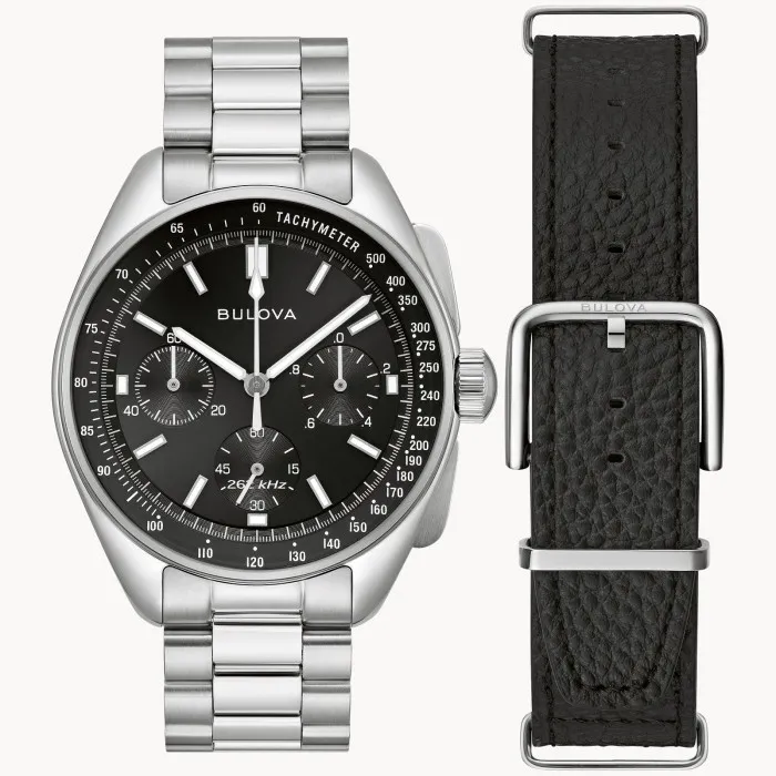 Embark on a journey through time with Bulova, an iconic brand that has become synonymous with pioneering innovation and refined craftsmanship. Since its inception in 1875, Bulova has been driven by the ambition to attain perfection, capturing the essence of ingenuity in its meticulous watchmaking process. An epitome of American spirit, the brand has left an indelible mark on history with milestones such as timing America's first radio and TV broadcasts. This legacy of firsts continues to define Bulova's philosophy, underlined by their relentless pursuit of precision and sophistication in every watch that graces the wrist of its discerning clientele.Introducing Bulova® Chronograph 'Lunar Pilot' Men's Watch 96K111