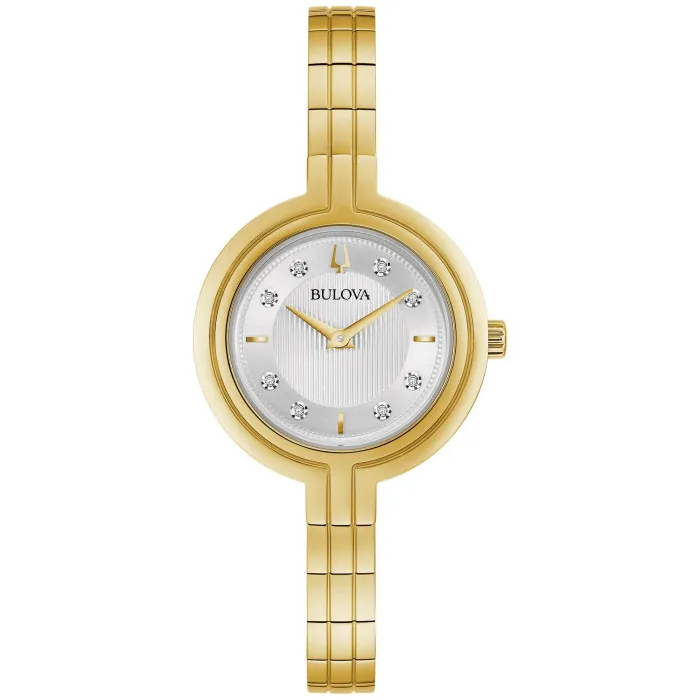 Bulova carries with it a heritage of innovation and excellence in watchmaking. Founded in 1875, the brand has consistently set standards in the industry, blending traditional techniques with futuristic technology. Bulova's century-spanning journey has been marked by milestone achievements, such as the creation of the first fully electronic watch with proprietary tuning-fork based technology. With a meticulous approach to precision and a flair for elegant design, Bulova watches are not just timekeepers; they are emblematic of a rich history and a testament to the wearer's discerning taste. For the woman who appreciates both the timeless allure and the advancements of the modern world, Bulova offers a fusion of both in every meticulously crafted watch. The company takes pride in its dedication to detail and its commitment to sustainability, ensuring that each piece is a responsible choice for the fashion-forward individual.Introducing Bulova® Analogue 'Rhapsody' Women's Watch 97P144