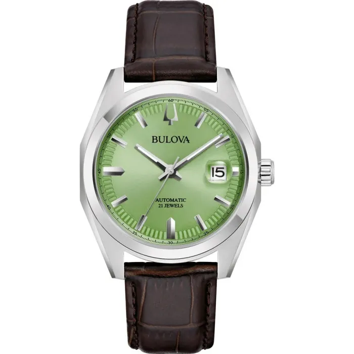 Renowned for their precision timepieces, Bulova epitomizes the fusion of innovative technology with timeless style. Cultivating mastery in craftsmanship since its establishment, Bulova watches are not mere accessories but a legacy to be worn. The Bulova name carries with it a history of firsts, including ground-breaking achievements in watchmaking that have set new standards in the art of timekeeping. The Bulova Analogue 'Surveyor' Men's Watch 96B427 isn't just a watch; it's a statement of elegance and precision engineering. Crafted for the man whose style is both timeless and forward-thinking, this watch boasts a sophisticated green dial set in a radiant silver stainless steel case, measuring an assertive 39mm in diameter with a comfortable thickness of 12mm. At the heart of this timepiece is the seamless automatic movement, ensuring not a second is lost in the rush of daily life. The sapphire glass dial window shields this masterpiece with unrivaled durability. Encircling your wrist is a luxurious brown leather strap, 21cm in length and 19mm in width, effortlessly securing with the classic buckle clasp. Designed to handle the pressures of daily wear, the watch is water-resistant up to 3 bars, and the date feature ensures you're always on schedule. Every glance at the Surveyor’s analogue display confirms Bulova's commitment to functional sophistication and unparalleled attention to detail. For over four decades, Ormoda has been synonymous with delivering confidence and style directly to your doorstep. Embrace the essence of luxury shopping with Ormoda's promise of free express shipping facilitated by premium couriers. Change your mind or need adjustments? Take advantage of our 30-day free returns policy. Furthermore, with a two-year warranty, your investment in quality is assured. And through it all, our expert customer support is here to ensure your shopping experience is as seamless as your new Bulova watch. Since 1976, Ormoda has not only been a retailer but a trusted partner in making the most of every moment.Shop Bulova 96B427 at Ormoda