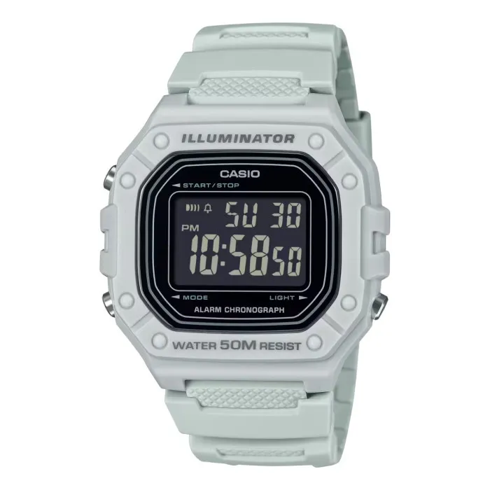Introducing the Casio® Digital 'Casio Collection' Men's Watch W-218H-8BVEF, crafted for the modern man who appreciates both style and functionality. With its sleek rectangular design, this timepiece brings together a sturdy build and a sophisticated look, making it suitable for any occasion. The watch features a durable resin case, measuring 44mm in length and 38mm in width, with a slim thickness of just 11mm. The grey case color combined with a striking black dial adds a contemporary flair, ensuring that you not only keep time but also make a fashion statement. The mineral glass window offers protection against daily wear and tear, ensuring that your watch remains in pristine condition over time. The Casio Collection is engineered with precision quartz movement, guaranteeing accuracy in every tick. This digital display provides clarity at a glance, perfect for those who lead busy lives. Further enhancing its functionality, the watch includes a day-date calendar feature, keeping you organized without fuss. You can confidently wear this watch on various adventures with its 5 bars water resistance, making it not just a beautiful accessory but a reliable companion. Comfort is key; hence the band is made of high-quality plastic in a matching grey color, measuring 21cm in length and 23mm in width. Secured with a classic buckle clasp, the watch fits snugly on your wrist, ensuring ease of use while still looking sharp. Weighing only 36 grams, it feels light yet ensures durability whether you’re at work or enjoying leisure activities. The Casio® Digital 'Casio Collection' Men's Watch is more than just a timekeeping accessory; it embodies the spirit of reliability and sophistication that every modern man desires.Shop Casio W-218H-8BVEF at Ormoda