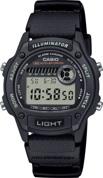 The casio casio collection w-220h-1a2vef is fitted with a quartz movement and a resin case. The lcd dial is housed by a black coloured case and a black plastic strap. The watch is delivered in an original box and has a warranty of 2 years.