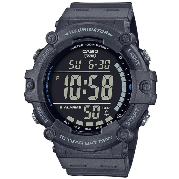 The Casio® Digital 'Collection' Men's Watch AE-1500WH-8BVEF masterfully combines functionality with a rugged yet stylish aesthetic, perfect for the modern man. Hailing from Casio, a brand synonymous with precision and durability, this watch is a testament to Japanese craftsmanship. Casio has carved a niche in the world of timepieces, bringing innovative designs to the forefront. Their collection is not just about keeping time; it's about enhancing your lifestyle with timekeeping solutions that cater to active individuals and adventurers alike. With the foundation laid in 1946, Casio continues to lead in technology and design. This watch seamlessly integrates into various environments, whether you're in the office, on a military expedition, or enjoying an outdoor adventure. The Casio® Digital 'Collection' Men's Watch AE-1500WH-8BVEF showcases a striking 50mm round grey resin case, designed to withstand tough conditions while maintaining a sleek appearance. It features a versatile LCD dial that provides clear visibility of time and notifications, encased in robust mineral glass for durability. Weighing a mere 58 grams, this lightweight watch ensures comfort during extended wear. The plastic band, measuring 21cm in length and 26mm in width, fits securely thanks to its reliable buckle clasp, making it easy to wear during daily activities or intense outdoor adventures. Equipped with a precise quartz movement, this watch offers exceptional accuracy. Its noteworthy features include a day-date calendar, alarm, light, and countdown timer, making it ideal for keeping track of time in any situation. With a water resistance of up to 10 bars, you can confidently wear it while swimming or engaging in water sports. The dual-time function adds an extra layer of convenience for travelers. This timepiece is not just an accessory, it's an essential tool designed to keep up with your dynamic lifestyle.Shop Casio AE-1500WH-8BVEF at Ormoda