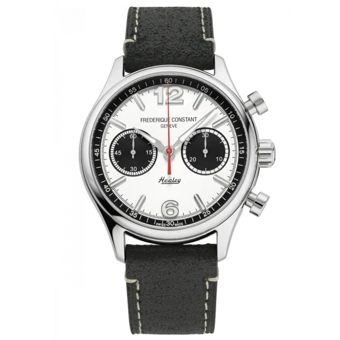 Frederique Constant has established itself as a prestigious name in the world of horology, merging classic aesthetics with modern innovation. Renowned for its dedication to excellence, the brand offers a range of meticulously crafted timepieces that reflect timeless elegance and reliable performance. The craftsmanship is unparalleled, embodying the values of Swiss watchmaking heritage while appealing to the contemporary watch lover. Each collection is characterized by sophisticated designs that seamlessly integrate intricate mechanisms, serenading enthusiasts with every tick. Frederique Constant's commitment to producing high-quality watches begins with the selection of fine materials, ensuring both durability and luxury. Its philosophy is simple but profound: to create delightful timepieces that celebrate craftsmanship and elegance, making them treasured assets for every collector. This dedication resonates through every product they offer, reflecting their mission to bring quality watches accessible to discerning gentlemen.Introducing Frederique Constant® Chronograph 'Vintage Rally Healey' Men's Watch FC-397HSB5B6