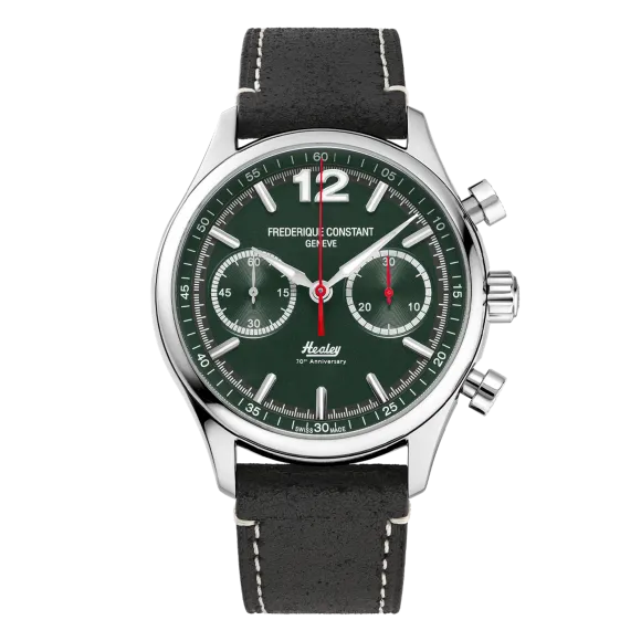 Frederique Constant is synonymous with elegance and precision in the world of watchmaking. Since its inception, this Swiss brand has consistently pushed the boundaries of luxury timepieces, demonstrating an unwavering commitment to craft, quality, and innovation. Frederique Constant embraces the art of horology, infusing traditional watchmaking techniques with modern flair and technology. Each creation tells a story of sophistication and passion, with meticulous attention to detail evident in every facet. The brand prides itself on blending luxury with affordability, ensuring that a remarkable timepiece is within reach for enthusiasts and collectors alike. Their dedication to producing watches that reflect personal style is matched only by their respect for the legacy of classic watchmaking. Frederique Constant's collections celebrate both the individual and the rich heritage of Swiss watchmaking, making each watch not just a tool for timekeeping but a true work of art.Introducing Frederique Constant® Chronograph 'Vintage Rally Healey Limited Edition' Men's Watch FC-397HDGR5B6