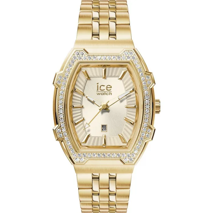 Introducing the exquisite Ice Watch® Analogue 'Ice Boliday - Almond Stones' Women's Watch, a stunning piece designed for those who appreciate elegance and sophistication. This small watch features a beautiful gold-toned stainless steel case that measures 45mm in length and 35mm in width, giving it a refined and luxurious appearance. With a thickness of just 12mm, it gracefully adorns the wrist, making it perfect for any occasion. The delicate stone settings on the bezel add an extra touch of charm, transforming a simple timepiece into a statement accessory. The gold dial is complemented by a protective mineral glass window, ensuring durability and clarity for your daily schedule. You will appreciate the date calendar functionality, which provides practicality without sacrificing style. The watch is powered by an accurate quartz movement, promising reliable timekeeping so you can stay punctual. This elegant watch comes with a matching gold stainless steel bracelet, which not only enhances its overall allure but also ensures comfort. The bracelet measures 19cm in length with a width of 18mm, and it features a fold-over clasp with push button, allowing for easy wear and a secure fit. Designed with a water resistance of up to 5 bars, this timepiece is as functional as it is fashionable. Perfect for women who want to make a graceful statement, the Ice Boliday - Almond Stones watch is a blend of style, sophistication, and reliability. Whether for daily wear or special occasions, this watch is bound to turn heads and complement any outfit beautifully.