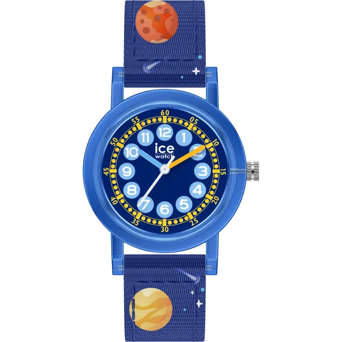 Discover the charm of time with the Ice Watch® Analogue 'Ice Learning - Blue Space' Boys's Watch 022692. This delightful piece embodies a playful spirit, perfect for helping young adventurers learn to tell time while showcasing their unique sense of style. Designed with a vibrant blue color palette, it features a round resin case that is not just stylish but also lightweight, weighing only 26 grams, making it wonderfully comfortable for everyday wear. With a case diameter of 32mm and a thickness of 10mm, this watch is perfectly sized for youthful wrists and burgeoning personalities. The watch boasts a captivating blue dial adorned with easy-to-read hour markers, encouraging young watch wearers to embrace the art of timekeeping. Featuring quartz movement ensures reliable timekeeping, while the mineral glass window protects the dial from scratches, ensuring it remains clear and easy to read. The 19cm fabric band provides a snug fit and features a reliable buckle clasp for added security. The 15mm width of the band is comfortable and designed to hold up against the energetic lifestyle of boys on the go. With a water resistance level of 3 bars, this timepiece can withstand splashes and brief immersion, making it a practical choice for outdoor play. Whether they are in the classroom or exploring the great outdoors, the Ice Learning - Blue Space watch serves as an excellent accessory, promoting both functionality and fun in their daily adventures.