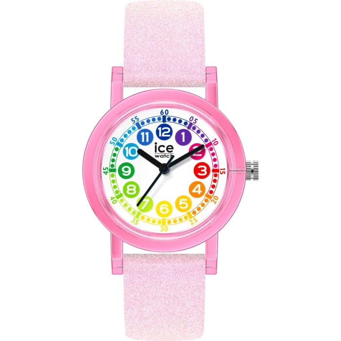 Embrace a world of vibrant charm with the Ice Watch Analogue 'Ice Learning - Pink Glitter' designed especially for girls. This playful timepiece effortlessly combines functionality with a captivating design, perfect for young trendsetters. With a stylish pink resin case measuring 32mm in diameter, this watch makes a statement on every little wrist. The round case, with a thickness of just 10mm, offers a comfortable fit, ensuring that it can be worn all day with ease. The white dial contrasts beautifully against the sparkly pink accents, providing a delightful touch of sparkle that will brighten up any outfit. Powered by reliable quartz movement, this watch ensures accurate timekeeping, so young wearers can stay on schedule while looking fabulous. The durable mineral glass window protects the dial, making it a resilient companion for everyday adventures. With a casual style, the Ice Learning watch is perfect for both school days and playdates, making it a versatile addition to any young person’s accessory collection. The silicone watch band, which measures 19cm in length and 15mm in width, provides a comfortable and secure fit, complemented by a traditional buckle clasp. The cheerful pink band adds to the overall whimsical appeal, while the watch’s water resistance to 3 bars ensures it can withstand splashes and drizzles without any worry. Light as a feather at just 26 grams, this delightful timepiece makes for an ideal gift, offering both style and practicality for young girls learning to tell time with flair. Shop Ice Watch 022689 at Ormoda