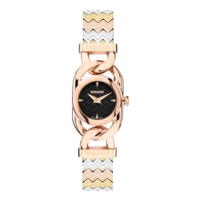 Missoni is a luxurious fashion brand that has captivated the world with its distinctive style since its inception. Founded in Italy, the brand has become synonymous with elegance, artistry, and a dash of playful exuberance. The hallmark of Missoni’s creations is its signature zigzag pattern and vibrant color palettes that draw inspiration from nature, art, and culture. This commitment to combining traditional craftsmanship with innovative design sets Missoni apart in the realm of luxury fashion. With a rich history rooted in textile artistry, Missoni has successfully expanded into various accessory lines, including an enchanting array of watches that showcase their unique aesthetic. Each piece reflects the brand's dedication to quality and style, offering a sophisticated yet contemporary twist on classic designs. Missoni watches not only serve as functional timepieces but also as refined accessories that elevate any outfit, making a bold statement of personal style and sophistication. Experience the allure and vibrant spirit of Missoni, where timeless elegance meets modernity. Introducing Missoni® Analogue 'Gioiello' Women's Watch MWSL01122