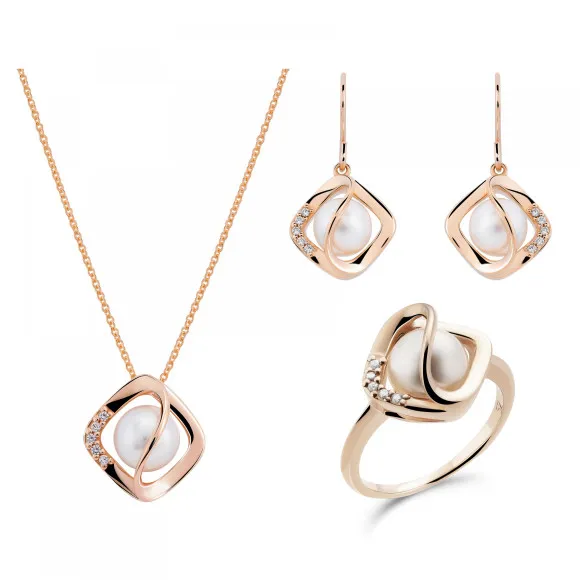Introducing Orphelia® 'Aina' Women's Sterling Silver Set: Necklace + Earrings + Ring - Rose SET-7471/RG