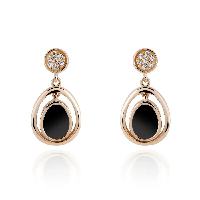 Introducing the Orphelia® 'Alda' Women's Sterling Silver Drop Earrings - Rose ZO-7470, a true embodiment of sophistication and elegance. Crafted from 925 sterling silver, these exquisite earrings blend a contemporary design with timeless charm. The gentle rose hue adds a touch of warmth, making them the perfect accessory for any occasion. The luxurious combination of onyx and zirconium stones delivers a striking contrast in a delicate yet bold design that truly elevates your fashion statement. Measuring 2cm in length and 1cm in width, the 'Alda' earrings are perfectly sized to frame the face beautifully. The intricate craftsmanship is evident in every detail, from the shimmer of the rose-toned metal to the captivating black stones, which are sure to catch the light and draw admiration. The butterfly back finding ensures a secure and comfortable fit, making these earrings an effortless choice for both daytime events and evening galas. Styling these earrings is a breeze; pair them with a classic little black dress for a refined look or wear them with your favorite denim for a more casual vibe. The versatility of the 'Alda' earrings means they make a thoughtful gift for a special woman in your life or a treat for yourself when you're in need of something extra chic. These earrings are more than just accessories; they are a reflection of your personal style and sophistication, destined to become a staple in your jewelry collection.