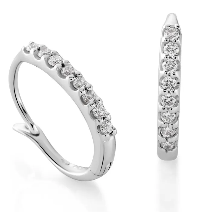 Introducing the exquisite Orphelia® 'Elaisa' Women's Whitegold 18C Hoop Earrings - Silver OD-5291. These stunning earrings redefine elegance, crafted for the sophisticated woman who appreciates the finer things in life. Made from 18 carat white gold, their gentle shine adds a luxuriously delicate touch to any ensemble. With a weight of 2.30 grams, each piece is light yet makes a beautiful statement. The hoop design is classic and versatile, perfect for both daytime elegance and evening glamour. Each earring features a crafted snap-lock finding for secure wear and ultimate comfort. The hoop's elegant diameter of 1.5 centimeters and width of 0.2 centimeters harmonize perfectly to create a flattering silhouette. What truly sets the 'Elaisa' earrings apart are the sixteen brilliant-cut diamonds, adding a total diamond weight of 0.21 carats. These diamonds are renowned for their clarity, exhibiting small inclusions yet radiating a white brilliance that enhances the allure of the earrings. Their Ajourfassung setting artfully showcases the stones, allowing light to dance around them, ensuring you stand out with every occasion. These earrings not only embody luxury but also reflect your unique style, making them an essential addition to your jewelry collection. The Orphelia® 'Elaisa' earrings are more than just accessories; they are a celebration of femininity and grace, created for women who desire to express themselves in extraordinary ways.