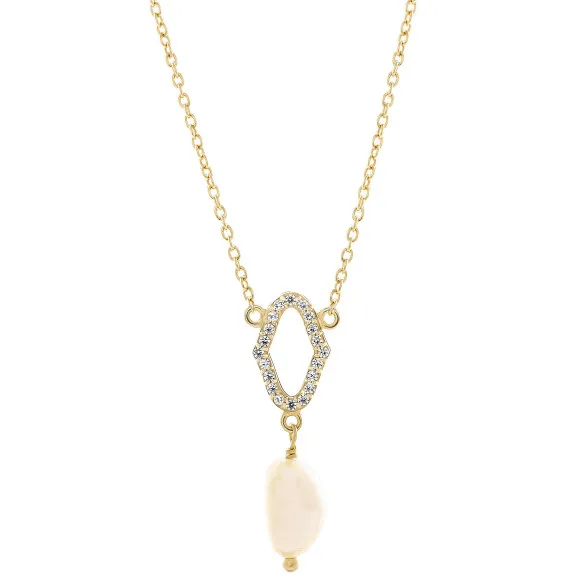 The Orphelia® 'Normandy' Women's Sterling Silver Pendant with Chain in gold ZK-7574/G is an exquisite piece that embodies elegance and sophistication. This stunning pendant showcases a beautiful interplay of lustrous freshwater-cultured pearls and sparkling zirconium gemstones. With a feminine design inspired by the serene landscapes of Normandy, it brings a touch of romanticism to any ensemble. The carefully crafted 925 sterling silver enhances its charm and durability, making it a timeless addition to your jewelry collection. Each round zirconium gem features a mesmerizing white hue that beautifully complements the off-white baroque pearls, adding depth and texture to the piece. The pendant boasts a height of 2.5 cm and a width of 0.7 cm, creating a striking statement without being overpowering. It presents a delightful combination of delicate aesthetics and robust build. The rolo chain, measuring 40+4 cm, allows for adjustable wear, perfect for layering or wearing solo as an elegant statement piece. Secured with a lobster claw clasp, the pendant is designed for comfort and reliable wear. No matter the occasion, whether a formal dinner or a casual outing, this pendant effortlessly elevates your look, turning heads with its unmistakable beauty. Embrace the allure of the Normandy pendant, where every detail is meticulously designed to enhance your elegance.