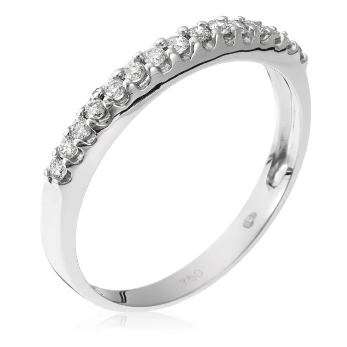Introducing the exquisite Orphelia® Women's Whitegold 18C Ring - Silver RD-3367, a true embodiment of elegance and sophistication. This luxurious ring features a brilliant arrangement of fifteen radiant diamonds, showcasing exceptional clarity with small inclusions and a color classification of White/Wesselton. Weighing just 2.20 grams, this delicate piece captures the essence of femininity and style, making it the perfect accessory for any occasion. Crafted from 18-carat white gold, the ring's lustrous sheen is both modern and timeless, ensuring it will complement your collection for years to come. The ring’s design incorporates a stunning ajourfassung setting which enhances the diamonds' sparkle while allowing light to play through each stone, accentuating their beauty. With a total diamond weight of 0.2 carats, the diamonds are expertly cut in a brilliant style that maximizes their brilliance and fire. Measuring 0.3 centimeters in width, this ring exudes subtlety while still making a statement. Its design is versatile enough to be worn alone or stacked with other pieces for a trendy layered look. Perfectly suited for women with a taste for luxury, the Orphelia® ring is not just a piece of jewelry; it's a statement of style and grace. Whether you're dressing up for a special occasion or adding a touch of glamour to your everyday attire, this ring is the quintessential adornment. Let it be your go-to accessory that speaks to your refined taste and love for exquisite craftsmanship.