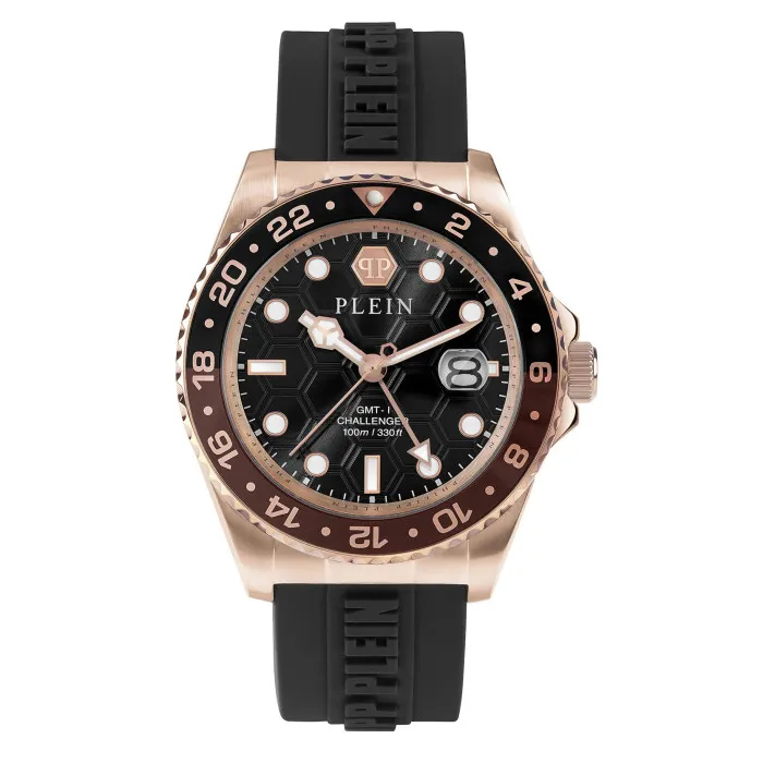 Step into a world where sophistication meets masculinity with the Philipp Plein® Analogue 'Gmt-i Challenger' Men's Watch PWYBA0523. This exceptional timepiece showcases a striking design that captures the essence of modern luxury. The watch features a robust 44mm round case, crafted from durable stainless steel, and exquisitely finished in a stunning rose gold tone. With a thickness of 12mm, the Gmt-i Challenger exudes confidence while ensuring a comfortable fit on your wrist. The effortless elegance of this watch is complemented by a sleek black dial protected by resilient mineral glass, making it an impeccable choice for any occasion. The turnable bezel adds versatility for those who appreciate both aesthetics and functionality. The watch also includes a convenient date display, appealing to the modern man’s need for practicality. The luxury continues with a comfortable black silicone band, measuring 21cm in length and 21mm in width, equipped with a secure buckle clasp. This combination not only offers a stylish silhouette but also remarkable durability for an active lifestyle. With a water resistance of up to 5 bars, the Gmt-i Challenger is engineered to withstand the rigors of daily wear while retaining its upscale appearance. Whether you are in a boardroom meeting or enjoying leisure time outdoors, this timepiece seamlessly transitions for any situation, embodying versatility and class. Elevate your wrist game with a watch that doesn't just tell time but expresses your style. The Gmt-i Challenger is not just an accessory; it's a statement of who you are.