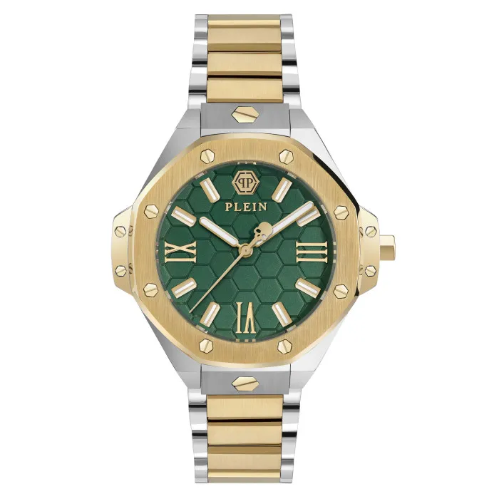 Introducing the remarkable Philipp Plein® Analogue 'Plein Lady Royal' Women's Watch PWBDA0724, a true embodiment of luxury and elegance designed specifically for the modern woman. This exquisite timepiece features a striking multicolour watch case, beautifully crafted from durable stainless steel. At a comfortable diameter of 39mm and a slender thickness of just 10mm, it sits elegantly on the wrist, ensuring that it’s not only a statement piece but also a comfortable accessory for any occasion. The vibrant green dial is protected by mineral glass, adding both style and resilience to this sophisticated watch.