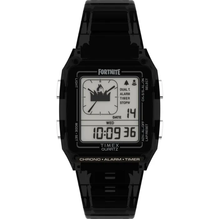 Timex is an iconic watch brand known for its commitment to quality, style, and innovation. Established in the late 19th century, the company has earned a reputation for producing durable and reliable timepieces that cater to a diverse audience. Timex watches are designed with a purpose in mind, whether that’s for adventure, casual outings, or professional settings. The brand combines classic craftsmanship with modern technology, resulting in watches that not only keep time but also tell a story. Specializing in both analog and digital formats, Timex never compromises on functionality. The attention to detail is evident in every aspect of their watches, from the selection of materials to the design of features. With Timex, you are ensured a watch that resonates with robustness and style, ideal for men who appreciate both form and function. The collaboration with popular culture, as seen in limited releases like the Lca X Fortnite model, showcases their ability to merge tradition with contemporary trends, making Timex a beloved choice across generations. Introducing Timex® Digital 'Lca X Fortnite' Men's Watch TW2W96500