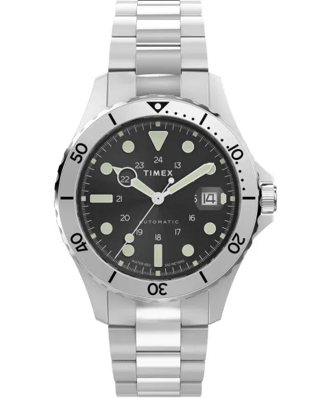 The timex navi tw2y15300 is fitted with a automatic movement and a stainless steel case. The black dial is housed by a silver coloured case and a silver stainless steel strap. The watch is delivered in an original box and has a warranty of 2 years.
