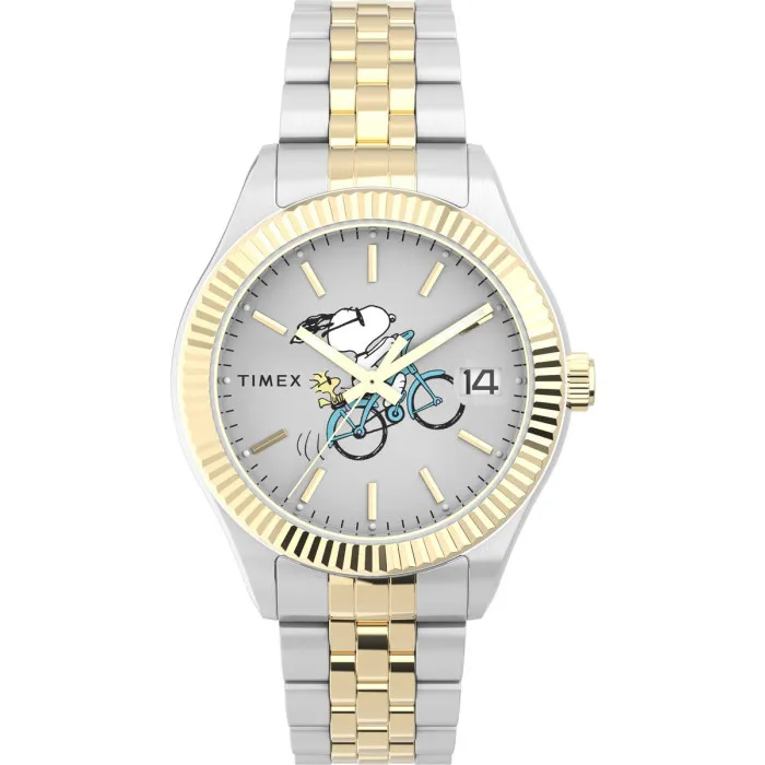 Introducing the Timex® Analogue 'Peanuts Legacy' Women's Watch TW2W78800, a delightful blend of nostalgia and style. This charming timepiece features an impressive quartz movement that ensures precision timing, so you will always be right on schedule. With a case diameter of 34mm and a thickness of 10mm, it strikes the perfect balance between elegance and comfort. The durable stainless steel case showcases a stunning multicolour design, which is both playful and sophisticated, allowing it to seamlessly complement any outfit. The watch boasts a captivating white dial that is encased in durable mineral glass, ensuring clarity and longevity. Whether you're dashing to a meeting or enjoying a leisurely afternoon, the clear date calendar feature keeps you on top of your schedule. The multicolour stainless steel band is 19cm long and 15mm wide, designed for both style and stability, while the fold-over push-button clasp provides convenience and security, making it easy to wear. This watch is water-resistant up to 5 bars, making it suitable for a splash of water but not for diving or swimming. The playful design, inspired by the beloved Peanuts characters, adds a delightful twist to traditional watch aesthetics. It’s a perfect gift for the fun-loving woman who enjoys a blend of elegance and whimsy in her accessories.Shop Timex TW2W78800 at Ormoda