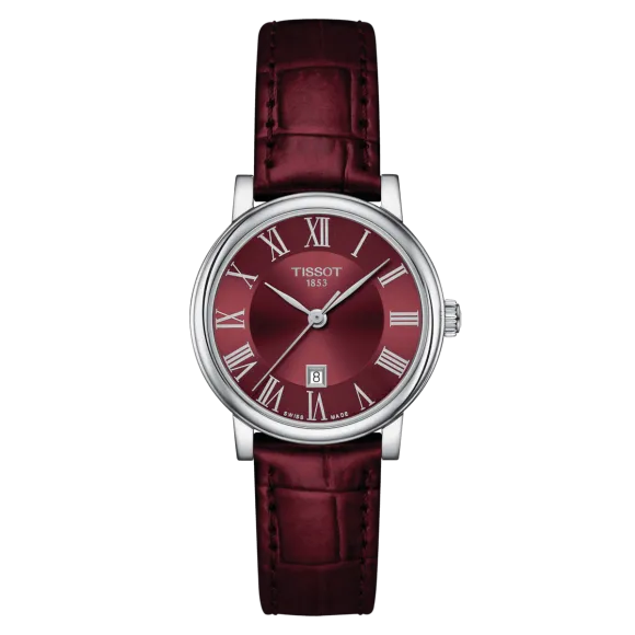The Tissot® Analogue 'Carson Premium' Women's Watch T1222101637300 embodies elegance and sophistication, making it a must-have addition to any woman's timepiece collection. Crafted with meticulous attention to detail, this dress watch features a stunning round case made from high-quality stainless steel, valued for its durability and timeless appeal. With a case diameter of 30mm and a delicate thickness of 7mm, its sleek design effortlessly complements any outfit, whether for a formal event or casual outing. The watch is presented in a captivating burgundy hue, both on the dial and the leather strap, which is not only stylish but also luxurious to wear. The leather band measures 19cm in length with a width of 15mm, ensuring a comfortable fit on the wrist, secured with a classic buckle clasp. The lush burgundy dial is protected by sapphire glass, known for its hardness and scratch resistance, which maintains the watch's pristine condition over time. The analogue display features elegant markers that gleam against the background, alongside a date calendar to keep you organized in style. With a water resistance of up to 5 bars, this timepiece is designed for the modern woman who values both functionality and fashion. Weighing in at only 29 grams, the watch promises to be lightweight yet striking on your wrist, making it perfect for all-day wear. Whether you're attending a business meeting or a social gathering, the Tissot Carson Premium ensures that you remain punctual and stylish.