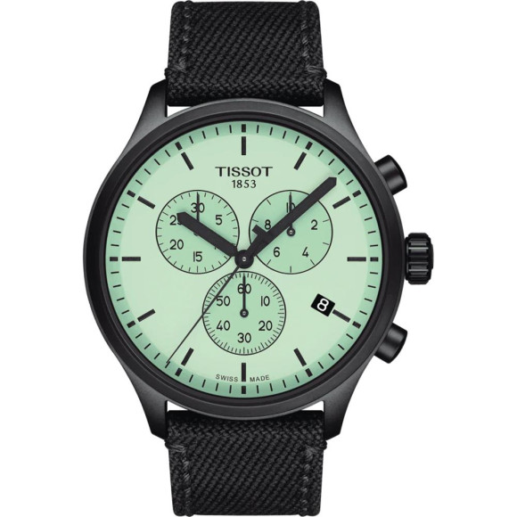Introducing the Tissot® Chronograph 'Chrono Xl' Men's Watch T1166173709100, a masterclass in watchmaking that is designed for the modern man who values both style and functionality. This timepiece stands out with its bold 45mm black stainless steel case, offering a robust appearance while maintaining a lightweight feel. The watch's round design is complemented by a striking green dial that is protected by sapphire glass, ensuring clarity and durability. The striking color combination is perfect for a casual outing or a day at the office, providing versatility to suit any occasion. This watch features a precision quartz movement, renowned for its accuracy and reliability, which is essential for the active lifestyle of today’s man. The chronograph function allows you to time events with precision, while the date calendar keeps you organized. The black fabric band not only enhances comfort but also adds a modern twist to the overall aesthetic. With a band length of 21cm and a width of 22mm, this watch is designed to fit securely on the wrist. Water resistant up to 10 bars, the Tissot Chrono Xl is suitable for swimming and snorkeling, eliminating the worry of water damage. Weighing in at a mere 84 grams, it feels effortless on the wrist, making it the ideal companion for every adventure. Designed with attention to detail, every aspect of this watch is tailored to perfection, suitable for the distinguished man who appreciates luxury without sacrificing functionality.Shop Tissot T1166173709100 at Ormoda