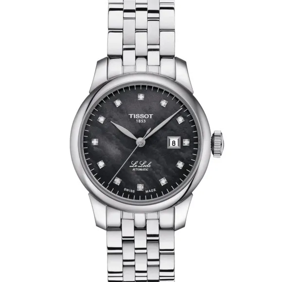 Tissot® Analogue 'Le Locle' Women's Watch T0062071112600 embodies a sublime blend of timeless elegance and modern sophistication, designed exclusively for women who appreciate the finer things in life. This exquisite timepiece features a striking black dial, beautifully complemented by a radiant silver stainless steel case. With a diameter of 30mm and a mere thickness of 9mm, it gracefully rests on the wrist, making it ideal for both everyday wear and special occasions. The watch is powered by a precise automatic movement, ensuring reliability and accuracy that meets the highest standards of Swiss watchmaking.