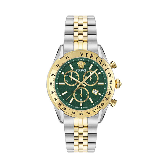 Versace is synonymous with Italian luxury and timeless elegance. With a heritage that dates back to 1978, the brand has continually redefined glamour through its bold designs and exquisite craftsmanship. Every watch crafted by Versace is more than just a timepiece; it is a work of art that reflects the brand’s dedication to innovation and finesse. The meticulous attention to detail is evident in each component, from the choice of materials to the intricate designs that adorn its watches. The Chrono Master collection is a perfect illustration of Versace's commitment to excellence, combining traditional watchmaking techniques with modern aesthetics. Each piece is designed for those who appreciate high-quality fashion and seek to express their individuality while embracing luxury. With its unmistakable Medusa logo and distinctive motifs, Versace watches are crafted for the discerning gentleman who desires to wear a piece of legacy on his wrist.Introducing Versace® Chronograph 'Chrono Master' Men's Watch VE8R00524