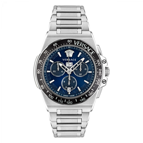 Versace is synonymous with glamour, and its timepieces reflect this ethos perfectly. Founded by Gianni Versace in 1978, the brand has become a symbol of Italian luxury and craftsmanship. Each watch embodies the bold aesthetics and aggressive style that Versace is famous for, combining innovation with traditional craftsmanship. The Greca design motif is a hallmark of the brand, adding a distinct signature flair to its timepieces. Versace watches are made for those who appreciate high-end fashion and are unafraid to make a statement. The exquisite detail, superior materials, and cutting-edge technology ensure that every piece is a luxurious accessory crafted to perfection. Versace stands not just for extravagance but also for quality, embodying the spirit of modern luxury with an eye toward bold creativity and unparalleled artistry.Introducing Versace® Chronograph 'Greca Extreme Chrono' Men's Watch VE7H00423