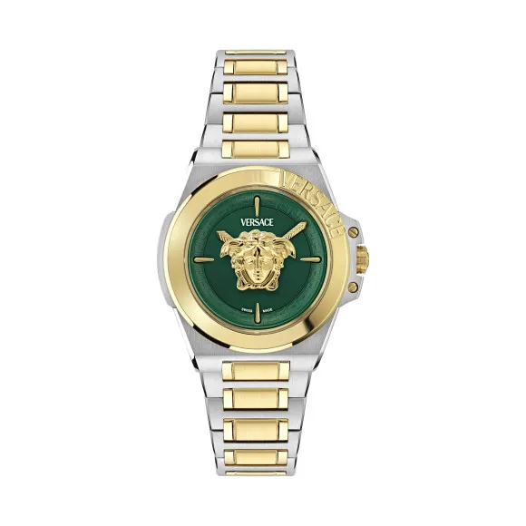 Elevate your elegance with the Versace Analogue 'Hera' Women's Watch VE8D00524, a true masterpiece that embodies sophistication and style. At 38mm, the round case, crafted from premium stainless steel, showcases a stunning multicolour finish, making it a statement piece for any occasion. The rich green dial, protected by sapphire glass, enhances readability while radiating an aura of luxury. Designed specifically for women who appreciate exclusive design, this watch is more than just a timekeeper; it's an expression of personality and taste. The quartz movement within ensures precise timekeeping, while the multifunctional features of this dress watch comply effortlessly with both daytime chic and evening glamour. The wristband, made with the same high-quality stainless steel, provides durability and comfort, measuring 19cm in length and 23mm in width for an impeccable fit. The unique multicolour configuration of the band complements the watch case beautifully, bringing forth a synergy of elegance and modern design. With a water resistance rating of 5 ATM, the 'Hera' watch is not just aesthetically pleasing; it's also reliable enough for day-to-day wear, encompassing the essence of versatility. The deployment clasp ensures security while remaining easy to wear. Discover the harmony between luxury and functionality with this exquisite piece from Versace, designed for the modern woman who cherishes both beauty and authenticity. Shop Versace VE8D00524 at Ormoda