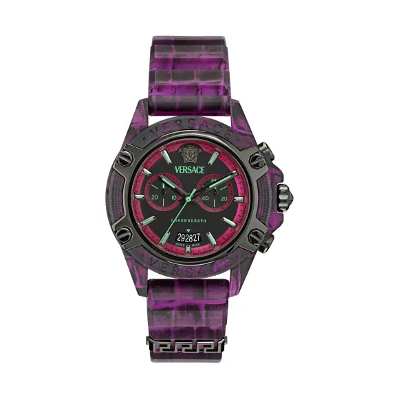 Versace is an iconic fashion brand that stands at the forefront of luxury and sophistication, renowned for its bold designs and timeless elegance. Founded by Gianni Versace in 1978, the brand has carved a distinctive place in the world of haute couture, redefining the fashion landscape with its audacious prints, exquisite materials, and innovative silhouettes. Each piece crafted under the Versace label is a testament to exquisite Italian craftsmanship, merging artistic vision with unparalleled style. The Versace watches reflect the same ethos; they are not merely timepieces but statements of personality and luxury. Combining high-quality materials with cutting-edge technology, Versace watches promise both perfection and practicality. Versace continues to inspire and captivate, making them a favorite among high-profile celebrities and fashion connoisseurs alike. The Icon Active line offers a modern interpretation of the traditional watch, appealing to women who exude confidence and style, proving that luxury can be accessible without losing charm or elegance. Introducing Versace® Chronograph 'Icon Active' Women's Watch VE8P00124