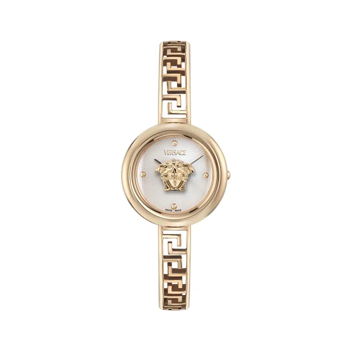 Versace is synonymous with luxury, elegance, and high fashion, setting standards for the world of fine watches and accessories. Since its inception, the brand has captivated audiences with its bold aesthetics and intricate designs that speak to the heart of Italian craftsmanship and art. Each timepiece is not just a watch but a testament to the brand’s unrivaled heritage and commitment to quality. Versace blends innovative technologies with symbolic designs that often feature iconic motifs such as the Medusa emblem, drawing inspiration from Greco-Roman art and its glamorous lifestyle. With its exquisite attention to detail and dedication to precision, Versace watches are created for those who appreciate the finer things in life. Each piece mirrors the brand's vibrant personality while also resonating with the individuality of the wearer, making it a perfect accessory for the modern, sophisticated woman.Introducing Versace® Analogue 'Medusa Eclipse' Women's Watch VE5F00426