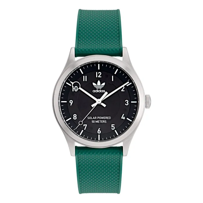 The Adidas Originals® Analogue 'Project One Sst' Unisex's Watch AOST23543 is a striking representation of casual elegance. Designed for a versatile audience, this timepiece melds sportiness with everyday wearability. The round stainless steel case, measuring 39mm in diameter and 9mm in thickness, encases a sleek black dial protected by durable mineral glass. This combination not only enhances the watch's aesthetic appeal but also its functionality, catering to those who appreciate both form and function. One standout feature of this watch is its quartz movement, ensuring precise timekeeping for everyday use. The unisex design appeals to a diverse demographic, making it perfect for anyone who desires a fashionable yet practical accessory. The watch's green plastic band, with a length of 20cm and a width of 19mm, offers comfort and a secure fit, fastened with a reliable buckle clasp. With a water resistance rating of up to 5 bars, this watch is suitable for casual swimming and washing hands, adding to its functionality. Weighing only 47 grams, it is lightweight, ensuring that you can wear it all day without discomfort. Whether you’re dressing up for a night out or running errands, the Adidas Originals® Analogue 'Project One Sst' serves as the perfect finishing touch to your outfit.
